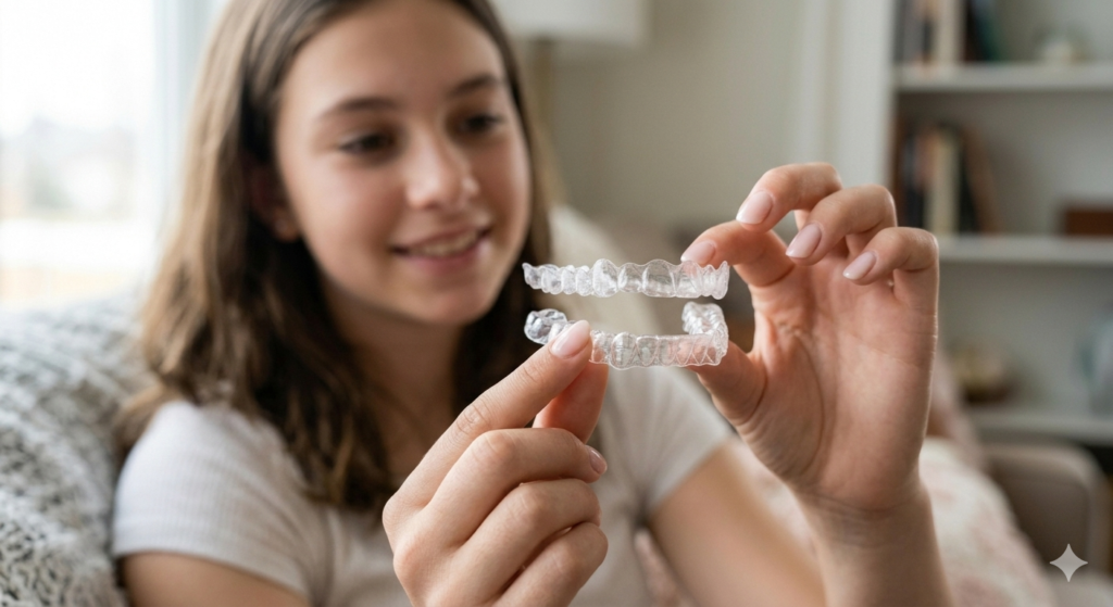 You’ll wear each set of aligners for 1–2 weeks, gradually shifting your teeth into alignment.